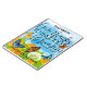 Customisable name design with a modern script typography Bible verse from Psalms 136:26 "Give thanks to the God of heaven." on a background of whimsical watercolor painted field of dandelions and butterflies in blue, green, yellow, and orange.