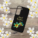 This inspirational Christian phone case features two colourful plumerias on a black background. The stylish yellow text says, "Saved by Grace." This is a durable phone case, good for everyday use, but most importantly, it's an encouraging message.