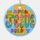 Christian Funky Jesus Ornament by ArtMuvz Illustration. Matching Customisable Christian t-shirts, Catholic apparel and prayer gifts. To personalise add your name or add text instead. Customise this christian ornament to make it uniquely yours or to give as a personalised gift. A great way to show your faith and spread the love of God. Features a bold Christian message, show your faith and spread God's love.