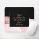 Elegant pink, black, and gold mousepad with the Christian Bible verse Psalm 46:5: God is within her. She will not fail.