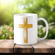 Gold cross, symbol of Christian faith. Customise with your name, organisation or message. ***Please note gold colour on design is not metallic.***