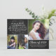 Rustic Christian Graduation Bible Verse Photo Collage Graduation Announcement on a Chalkboard Style Background. CUSTOMIZE this Christian graduation announcement with your own information and photos for a truly personalised invitation. Three photos on the front, and another one on the back that can be removed if you need more space for writing. Fonts and colours can be customised. Please contact us katescreationszazzle@gmail.com if you need assistance with the design or to enquire about matching products.