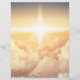 A heavenly scenic depiction for Your Church Fellowship Name business letterhead for Pastor, Priest, Deacon, and other Clergy. It is designed with a beautiful pastel orange sky, fluffy clouds, and sunlight beams. #Christian #Catholic