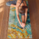 As a yoga mat, it is comfortable to use. I place a second mat under it for added comfort. But I mostly use this particular mat design for "Distance Reiki". (I am a graphic designer but I also do distance reiki work and needed something full size to work with my clients so I designed this for that purpose. The Chakras are highlighted and make it easy to place charkra stones over. I use a pendulum and tuning forks to balance the body's energy, and this helps me know, with greater detail, what part of the clients body I am connecting to when I feel fluctuations in the energy field. I am very pleased with how my design turned out. The background is very complex with color gradations and with text at the bottom. The text is readable and I am pleased with the detail in the graphics.