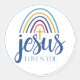 Embrace the timeless message of love and faith with our Christian Jesus Loves You Retro Cross and rainbow Classic Round Sticker. This vintage-inspired sticker beautifully combines the iconic image of the cross with the profound declaration of Jesus's love for all.