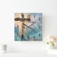 A loveable Christian Jesus prayer clock with Jesus nailed to the cross over the ocean.