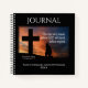 Stylish PRAYER JOURNAL NOTEBOOK with an inspirational message - THE MAN WHO KNEELS BEFORE GOD WILL STAND BEFORE ANYONE and Bible verse PRAY WITHOUT CEASING. The design shows a silhouette of a man kneeling before a cross. The placeholder heading at the top and placeholder name/year at the bottom are CUSTOMIZABLE, so you can personalise with your own details. This would make an ideal gift for Father's Day, Birthdays or Christmas
