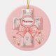 Christian Pink Bow Cross Ornament by ArtMuvz Illustration. Matching Customizable Christian t-shirts, kids apparel and prayer gifts. Christian pastor t-shirt, Pink cross gifts and church apparel. To personalize click on "personalize this template" then edit the fields provided for your custom gift. You can add your name or add text instead. Customize this cross ornament to make it uniquely yours or to give as a personalized gift