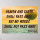 Christian poster with Bible verse Mark 13:31. Heaven and earth shall pass away but My words shall not pass away. Great inspirational gift for Christians or for anyone.