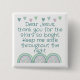 Monogrammed for you to insert your own prayer if you so choose, button. This cute boho theme with green rainbows and hearts, and green text on a white background, states, Dear Jesus, thank you for the stars so bright. Keep me safe throughout the night.