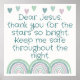 Monogrammed for you to insert your own prayer if you so choose, square poster. This cute boho theme with green rainbows and hearts, and green text on a white background, states, Dear Jesus, thank you for the stars so bright. Keep me safe throughout the night.