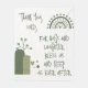 Monogrammed for you to insert your own prayer if you so choose, fleece blanket. This cute boho theme with an olive green rainbow and text on a white background states, Thank you, Lord, For Hugs and Laughter. Bless us and Keep us Ever After.