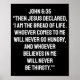 John 6:35 “Then Jesus declared, ‘I am the bread of life. Whoever comes to me will never go hungry, and whoever believes in me will never be thirsty.’”