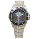 Has heft and feel of expensive stainless steel quartz watches. Good band with safety catch. I removed links, which is easy because engraved arrows show direction to push the linking pins. As always by this seller, the image (a railroad logo) is a perfect reproduction of my emailed image, and is precisely spaced and aligned.