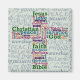 This religious word art / subway art design features words associated with Christianity arranged into the shape of a cross. Words include: God, Jesus, Christian, Bible, faith, love, peace, kindness, salvation, spiritual, Commandments, righteous, compassion, scripture, disciples, Christ, lamb, good, hope, truth, pray, Heaven, saviour, worship, passion, gospel, charity, pure, holy, joy, Lord, verse, church, miracle, belief, bless, grace, glory, will, spirit, angels, trinity, and cross.