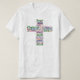 This religious word art / subway art design features words associated with Christianity arranged into the shape of a cross. Words include: God, Jesus, Christian, Bible, faith, love, peace, kindness, salvation, spiritual, Commandments, righteous, compassion, scripture, disciples, Christ, lamb, good, hope, truth, pray, Heaven, saviour, worship, passion, gospel, charity, pure, holy, joy, Lord, verse, church, miracle, belief, bless, grace, glory, will, spirit, angels, trinity, and cross.