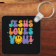 Christian Retro Jesus Loves You Religious Faith Go Key Ring