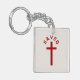 A simple and striking text design for Christians that features a large red cross in the centre and the word "Saved" in a bold red stamped look font curved up under the cross on the front and add your own photo or text to back. Choose your colour and style.