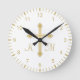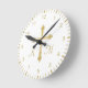 Christian Simple Gold Cross on White Monogram Round Clock