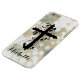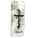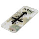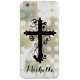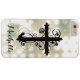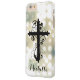 This personalised iPhone Case features a cross with a unique swirling design on a white lights background.