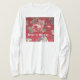 woman's cotton long-sleeved t-shirt,pink, with pink and red floral print photo, and words in white on the back: "Jesus saith...I am the way, and the truth, and the life: no man cometh unto the Father, but by me." -the Bible, John 14:6- and on the front, the same pink and red floral print with the words in white: "Jesus is the way..."