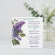 A Christian wedding invitation featuring a design of vintage lilacs on a white background.