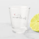 Shot glass with a scripted design, features the flag of Freetown Christiania in a heart.