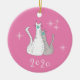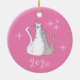 Christmas 2020 ornament, with a grey and white tabby cats face masks design set on a pink background. Accented with snowflakes, this cute item has white customisable lettering, if you choose to change the year.