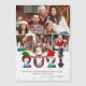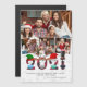 This magnetic photo card is a great modern take on traditional Christmas cards and is something your friends and family can enjoy for the whole year! This design features 4 custom family photos, with one large one and 3 smaller square ones in front. Under the photos is a white background with a subtle snowflake pattern and "2021" in red and black buffalo plaid. Each of the numbers is a cartoon character with funny, grumpy eyes to symbolise the frustration and silliness of the last year, each one has a Christmas-theme hat such as antlers, Santas hat, an elf hat and a top hat, and a face mask in a different colour. Click the "personalise" button to add your own details and replace the photos with your own!