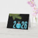 Turquoise holiday ornament with red berries hanging from a pine bough on a black for 2025.