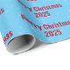 Merry Christmas 2025 on an aqua blue background with snowflakes