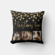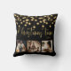 “Christmas time” in beautiful script on a black background. Replace photos with 3 of your personal favourite photos. Gold faux string lights/ lanterns hanging down. Change the year and what a beautiful pillow. Elegant. A perfect gift.