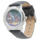 The leather band makes it seem like an “older kids” watch. Easy to read the time. Clear printing and image.