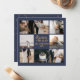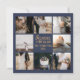 Elegant Navy Minimalist 8 Photo Collage Merry Christmas Script Holiday Card. This festive, navy, eight (8) photo holiday card template features a pretty photo collage and states, "Rejoice and Be Glad” Personalise with your name to the greeting text. On the reverse side is a minimalist navy solid with light speckles. You will love adding your photos of your family form the year to this greeting card for your family and friends in Christmas Holiday season.