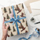 Christmas Abstract Birds and Trees Wrapping Paper