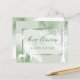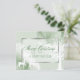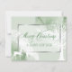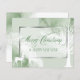 NEW! Affordable Lightweight Christmas Greetings with a beautiful Merry Christmas in scrolling calligraphy - in a silver frame - alcohol ink abstract design in shades of sage green with silhouette deer in white and a winter tree also in white - custom message on back