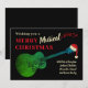 Bring some festive guitar music cheer to the christmas season with this fun merry musical christmas modern cool holiday card. Detailed hand drawn green acoustic guitar wearing a Santa hat with musical notes and typography script with easy to personalise template, Ideal for music loving families to send seasons greetings and for guitar players, music teachers and musicians. Original artwork by Catherine Sweetman