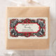 A intricately designed Christmas-themed address label, with Victorian elegance and a red-black colour palette. The card features intricate black ink illustrations of various Christmas elements. This detailed image is a digital illustration that showcases a perfect balance of joyful and tasteful design. The black ink creates a sense of mystery and sophistication.
