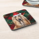 Christmas Afghan Hound Dog Red Plaid Holiday Coaster
