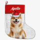 Christmas Akita Dog with Name Woof Background Large Christmas Stocking