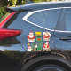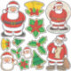 Christmas and New Year sticker set with Santas and celebration icons. Christmas holly, bells, christmas tree and poinsettia.