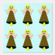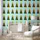 This awesome patterned wallpaper features a pretty Christmas Angel with blonde hair, blue eyes and a big smile. Her body is a festive green and red coloured bell with a yellow clapper at the bottom.