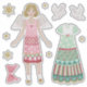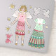 Cute Christmas paper-doll-like angel girl with an extra dress and bow. Original artwork by Marketa Stengl.