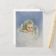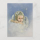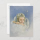 Christmas Angel. Original oil painting by artist Liz Viztes. An angel rests on fluffy clouds under the twinkling Star of Bethlehem in the serene blue sky above. She gazes thoughtfully as she awaits the celebration of the birth of Jesus. Holiday card for 2024.