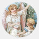 Vintage Christmas card illustration of a Christmas Angel with a Victorian girl.