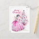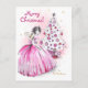 Very sweet and girly Christmas design of an female angel in a pink dress in front of a colourful Christmas tree with giftboxes underneath