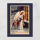 This vintage Christmas postcard shows an angel from heaven with a little deer bearing Christmas gifts looking in the window on Christmas Eve to bring peace and goodwill.