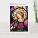 Stained glass window depicting angel playing trumpet. This card is perfect for the musician while also emphasizing a strong religious, Christian faith.