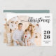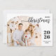Elegant and modern Christmas greeting card featuring a minimalist design displaying your favourite family picture inside a trendy arch frame. Easily customise with your name and the current year in stylish black serif fonts. The back of the card features a second customisable arched picture and a customisable greeting message.