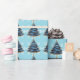 Christmas Artistic Blue Gold Tree Snowflakes Wrapping Paper